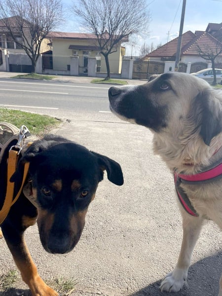 Draußen läuft Odette sehr schön an der Leine. Sie orientiert sich gut am Menschen, läuft ruhig bei Fuß und folgt zuverlässig. Freilauf wurde bisher noch nicht umfassend getestet – Rückruftraining findet aktuell in gesicherten Bereichen statt, wo sie in ruhiger Umgebung bereits recht gut zurückkommt.