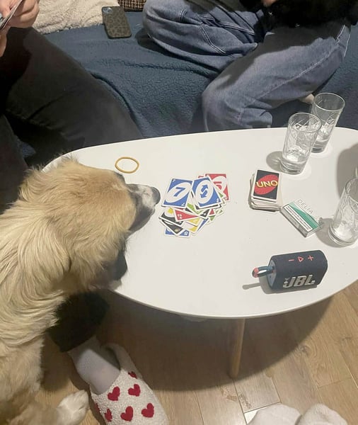 Mit anderen Hunden ist Odette sehr verträglich. Sowohl drinnen als auch draußen kommt sie gut mit ihnen zurecht.