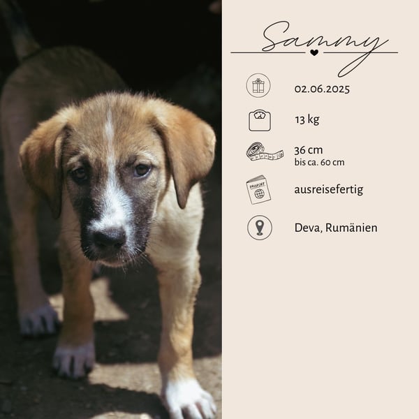 SAMMY wurde am 02.06.2025 geboren. Unserer Einschätzung nach wird er wohl eher ein großer Hund werden - wir schätzen so 55-60 cm.