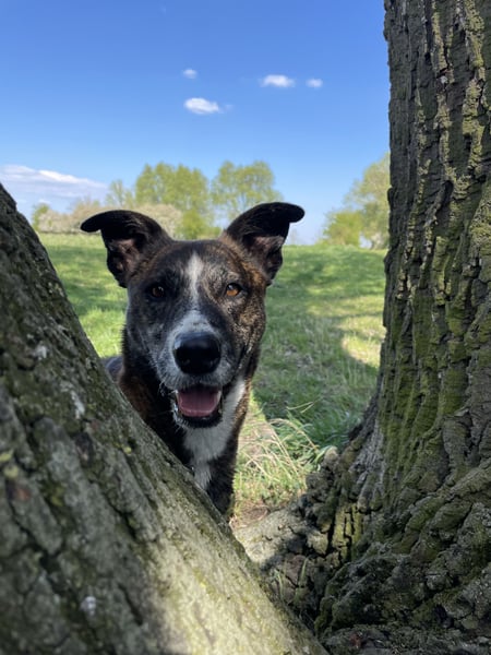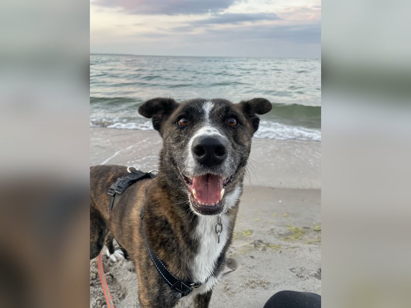 Gas ist ein 8-jähriger, kastrierter Mischlings-Rüde (55 cm, 20 kg) aus der Slowakei – mit einem Grundgehorsam, der Freude macht. Er bleibt entspannt alleine, fährt ruhig im Auto mit und liebt es zu spielen – mit Hunden genauso wie mit Menschen. Mit größeren Kindern kann man ihn sich gut vorstellen.