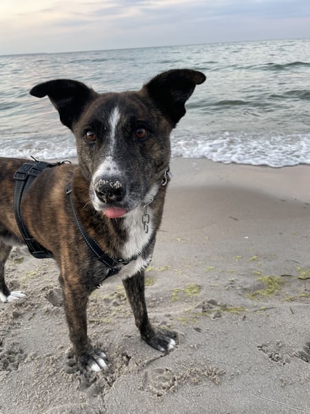 Seine Leinenführigkeit ist noch ausbaufähig, und seine Begeisterung für Fressbares leider auch. Beim Gassigehen braucht es aufmerksame Menschen, die dafür sorgen, dass nichts Unerwünschtes im Hund landet. In einem ruhigen, ländlichen Umfeld wäre das aber vermutlich das kleinste Problem.