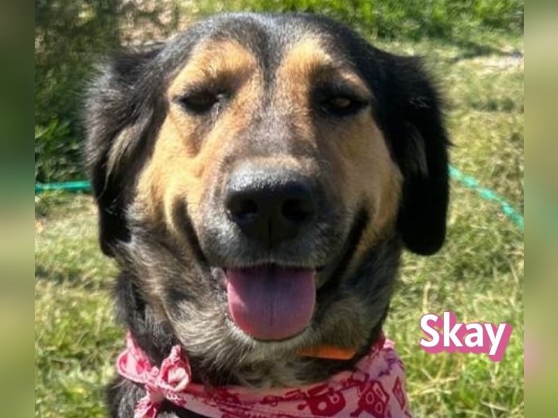 Skay wurde auf einem verlassenen Grundstück angebunden und in der prallen Sonne ohne Wasser und Futter zurückgelassen. Durch ihr lautes Bellen und Winseln wurde sie zum Glück gefunden und vor dem Verdursten gerettet. Mtittlerweile hat sich die liebe Hündin gut erholt, hat viel Freude beim Spielen, freut sich über Streicheleinheiten und Menschenkontakt. Sie ist lernwillig, und möchte ihrem Menschen gefallen. Skay ist eine aktive Hündin, die artgerecht ausgelastet werden sollte und nun aktive Menschen sucht, die sie auf ihrem Lebensweg bgleiten.