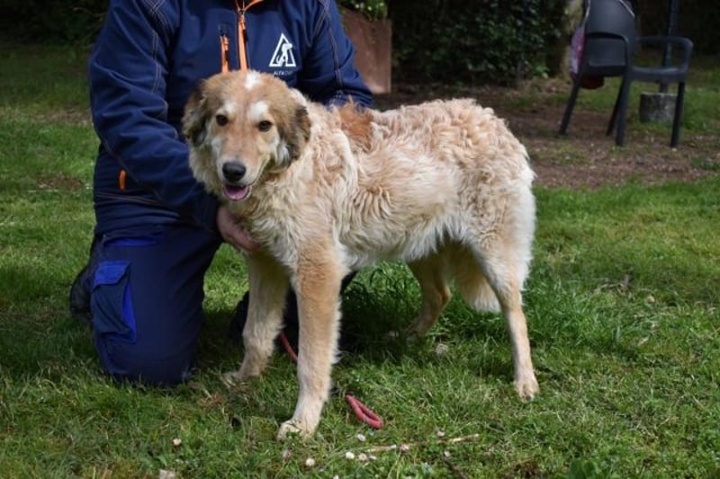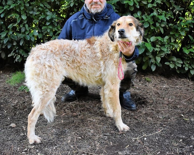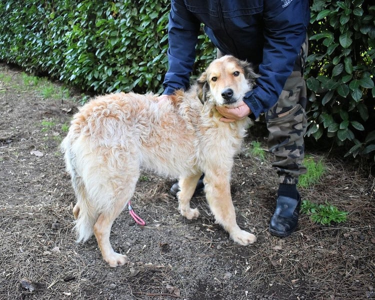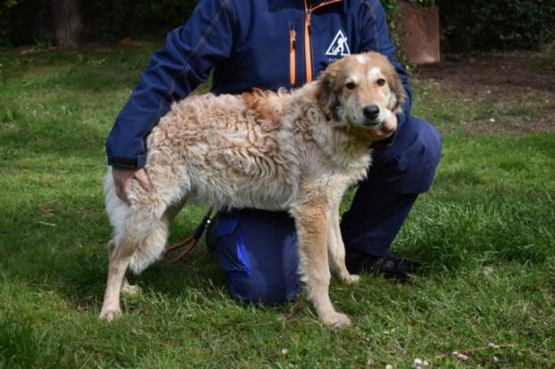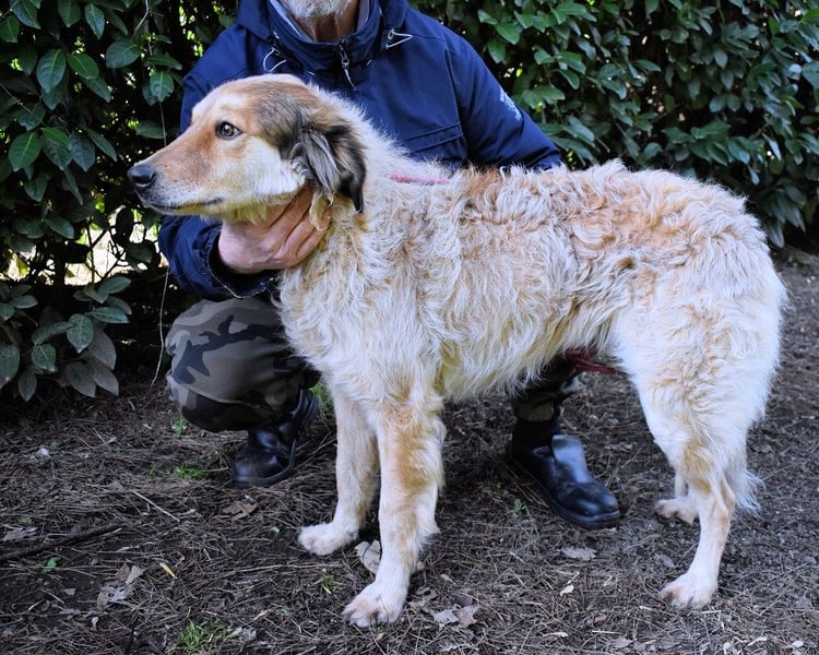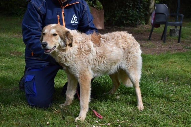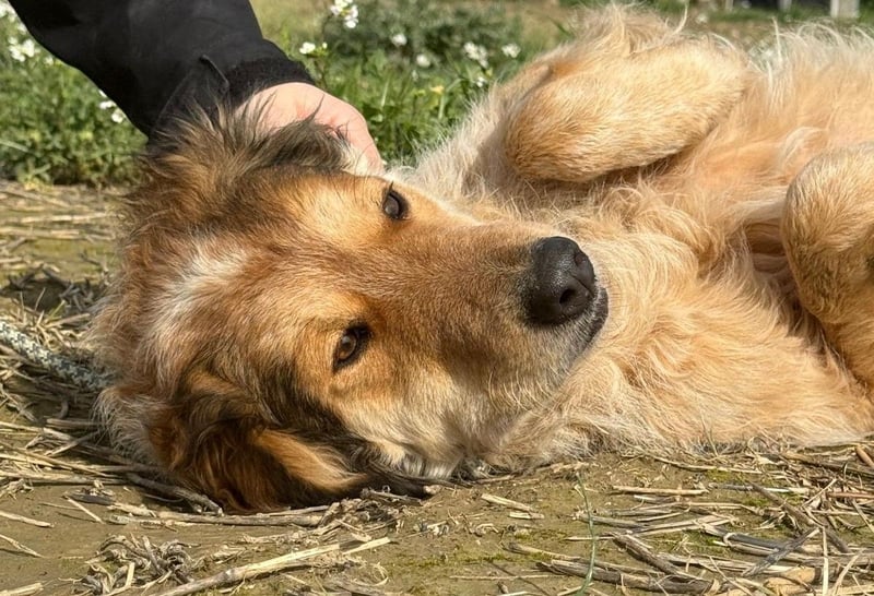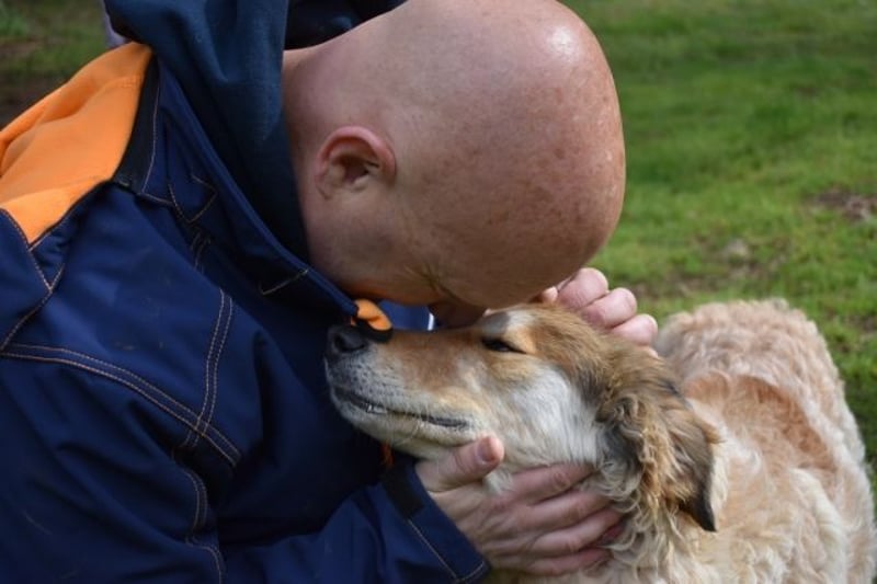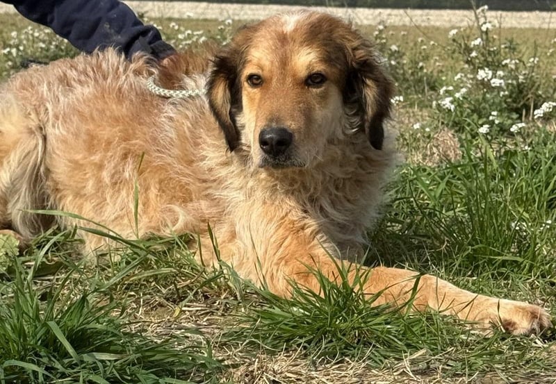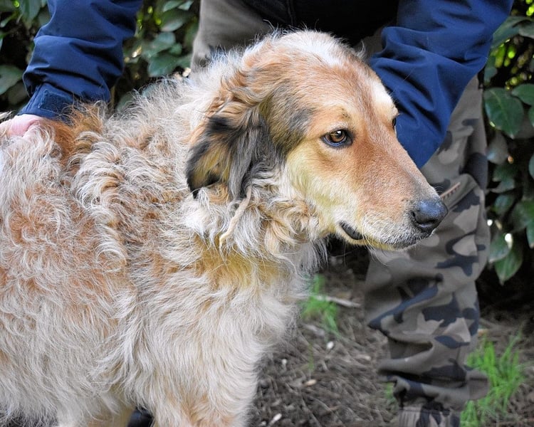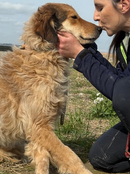 An der Leine läuft er – aber er wird unsicher, zieht, springt. Es gab niemanden, der ihm in Ruhe zeigte, wie das geht. Er ist neugierig auf Menschen – aber man merkt: Er weiß nicht, was er mit ihnen anfangen soll. Er lässt sich streicheln – auch wenn er es nicht gewohnt ist. Über drei Jahre im Zwinger lehren einem nicht, was Zuneigung bedeutet. Sie lehren einem nur, dass elf Geschwister gehen durften – und einer zurückbleibt.