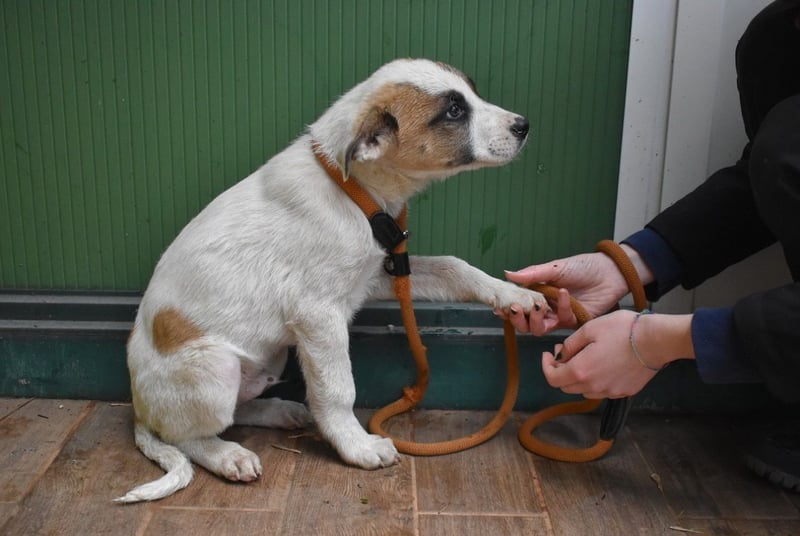 Sie fühlen sich geblendet? – Nein, liebe Leser, dieses Licht kommt nicht von seinem hellen Fell. Es kommt von ihm, tief aus seinem kleinen Welpenherz. Elenio ist noch so klein, vermutlich denkt er, das hier ist sicher nur ein Zwischenstopp. Ein verdammt blöder. – Im Grunde hat er da recht, zumindest wäre es nicht ganz so schlimm, wenn die Hunde nur kurzzeitig dort bleiben würden. Doch manche bleiben so lang, dass ihre kleine Flamme der Hoffnung von der Angst ausgepustet wird. Und manches Vertrauen. So wird es auch bei Elenio sein. Er ist noch nicht lange im Hundelager, er kam am 31. Januar mit seiner Schwester Eloria dort an. Leider hatte er auch eine Flohdermatitis, von der Kinn, Hals und Pfoten betroffen waren. Aber er erholt sich schon davon.