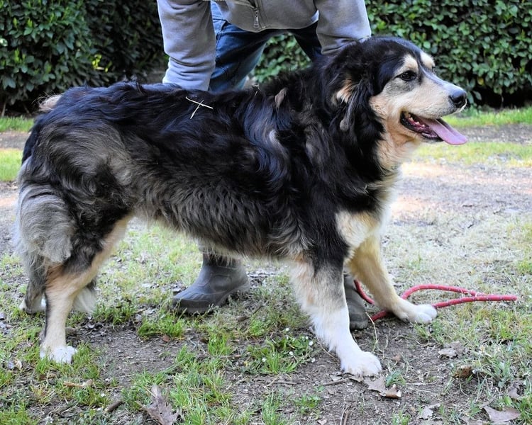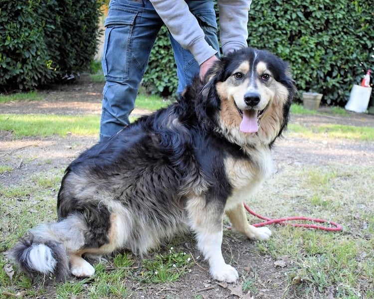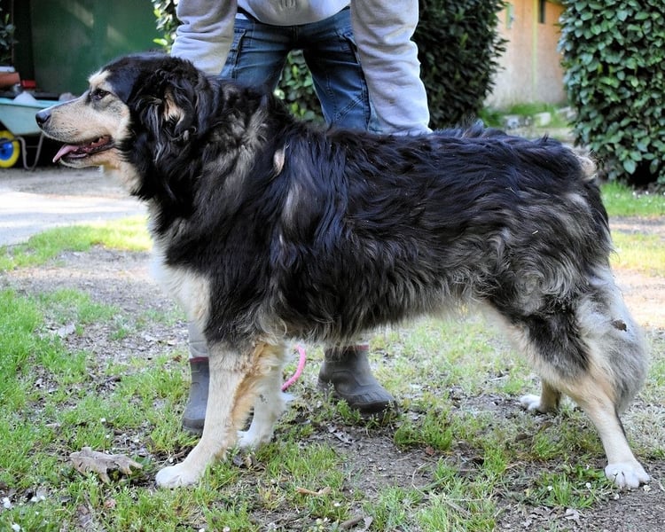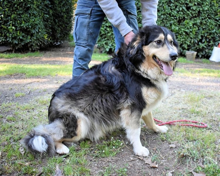 Oliverios Hinterbeine sind leicht deformiert und x-förmig. Als Welpe hatte er dadurch einen seltsamen Gang. Im Laufe der Zeit hat sich dieser stabilisiert, fällt aber noch immer ins Auge. X-Beine oder nicht – für Oliverio ist das kein Grund, nicht zum Musterschüler an der Leine zu werden.