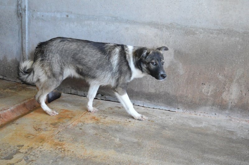 Unsere vier Hundekinder scheinen bislang noch nicht sehr viele Begegnungen mit freundlichen Zweibeinern gehabt zu haben. Bei den Besuchen der mit uns befreundeten Tierschützer im November 2025 zeigten sich alle vier schüchtern, vielleicht sogar ein wenig ängstlich. Es sind keine Angsthunde, aber sie kennen Berührungen, die Leine oder einfach nur die Gegenwart von Menschen, die es gut mit ihnen meinen, nicht. Aber keiner von ihnen hat Aggressivität gezeigt, weder die eine noch der andere hat zum Beispiel bei Berührung zu schnappen versucht, wie das einige Hunde aus Angst oder Unsicherheit tun. Nein, Quelisia und ihre Geschwister haben Fluchtwege gesucht, sind unter den Trinkeimer gekrochen oder haben sich hinter einem ihrer Zellengenossen versteckt.