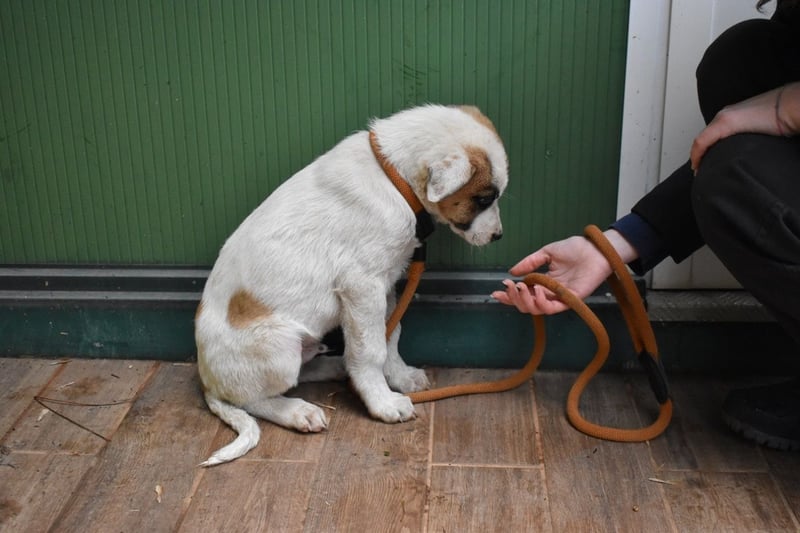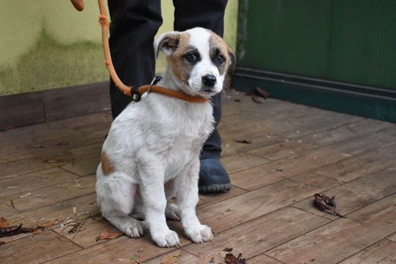 Sie fühlen sich geblendet? – Nein, liebe Leser, dieses Licht kommt nicht von seinem hellen Fell. Es kommt von ihm, tief aus seinem kleinen Welpenherz. Elenio ist noch so klein, vermutlich denkt er, das hier ist sicher nur ein Zwischenstopp. Ein verdammt blöder. – Im Grunde hat er da recht, zumindest wäre es nicht ganz so schlimm, wenn die Hunde nur kurzzeitig dort bleiben würden. Doch manche bleiben so lang, dass ihre kleine Flamme der Hoffnung von der Angst ausgepustet wird. Und manches Vertrauen. So wird es auch bei Elenio sein. Er ist noch nicht lange im Hundelager, er kam am 31. Januar mit seiner Schwester Eloria dort an. Leider hatte er auch eine Flohdermatitis, von der Kinn, Hals und Pfoten betroffen waren. Aber er erholt sich schon davon.