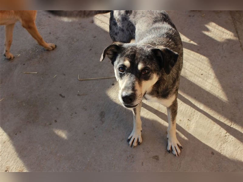 Das ist Kamu. Seine Fellzeichnung macht ihn zu einem besonders hübschen sowie einzigartigen Jungrüden. Das ist aber nicht alles, was er zu bieten hat: Kamu ist uns Menschen gegenüber zwar etwas schüchtern, aber dennoch sehr freundlich und genießt kleine Streicheleinheiten sehr. Auch mit Artgenossen versteht er sich gut. Er besitzt definitiv das Potential für einen tollen Hundekumpel.