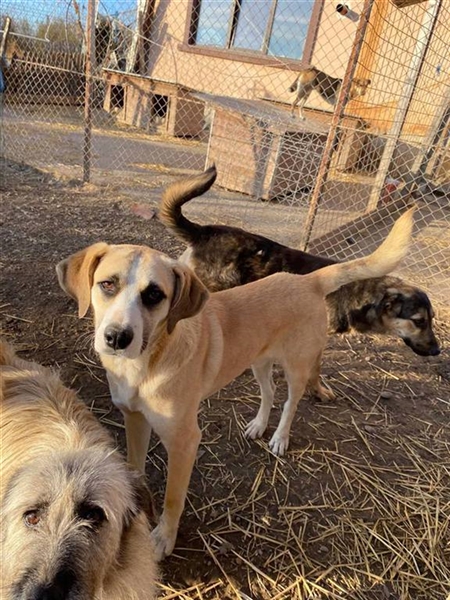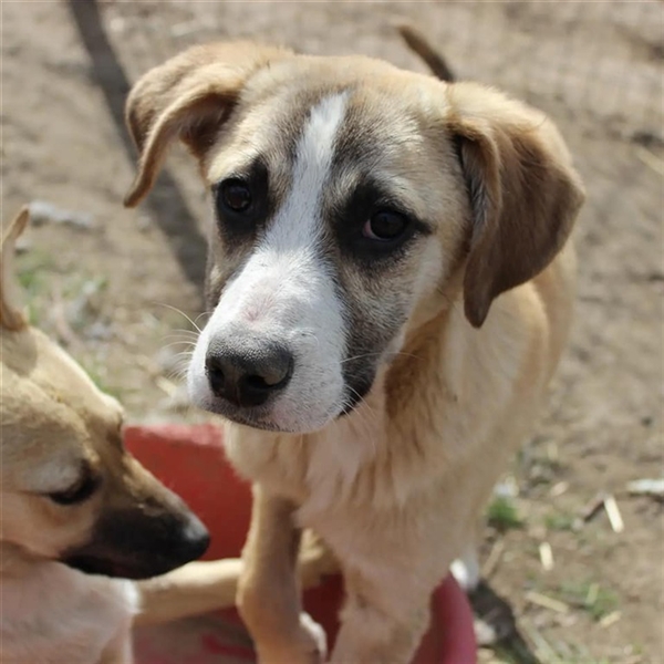 Nun leben die beiden Welpenbuben im hinteren Auslauf des Shelters und lernen so auch andere Hunde jeden Alters kennen. Sie kommen gut mit ihnen klar. Uns Menschen beobachten sie neugierig, aber lieber erst einmal aus sicherer Entfernung.
