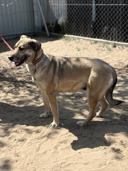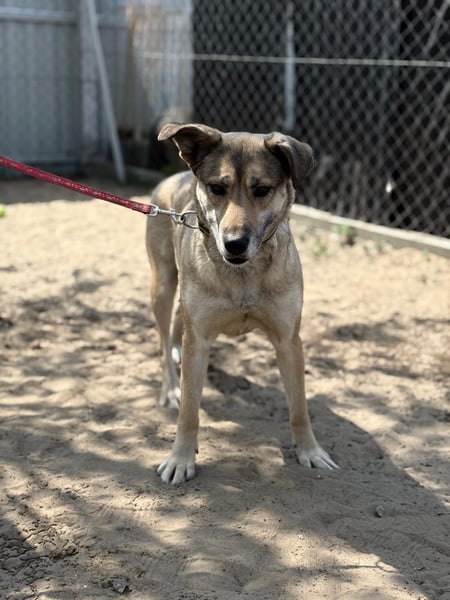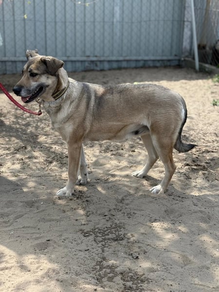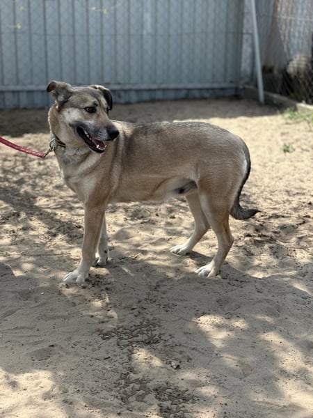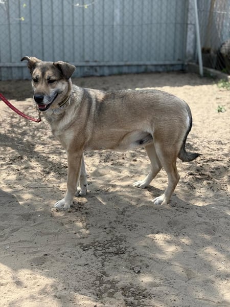 Die wunderschöne Nayeli kam am 19.12.2025, zusammen mit ihren zwölf Welpen und weiteren Hunden ins Tierheim nach Kecskemét. Es fand eine große Beschlagnahmung statt und da es so viele Hunde waren, wurden sie auf verschiedene Tierheime in ganz Ungarn verteilt. Endlich hat das Gericht die Hunde freigegeben und wir können sie in die Vermittlung nehmen. Mama Nayeli war angekettet und hatte sich ein Erdloch gegraben, in dem sie ihre Kinder gebar. Dass alle zwölf Welpen überlebt haben, grenzt an ein Wunder. Einige der Hundekinder haben ihr Happyend bereits gefunden und wir hoffen sehr, dass auch die Mami bald Glück hat.