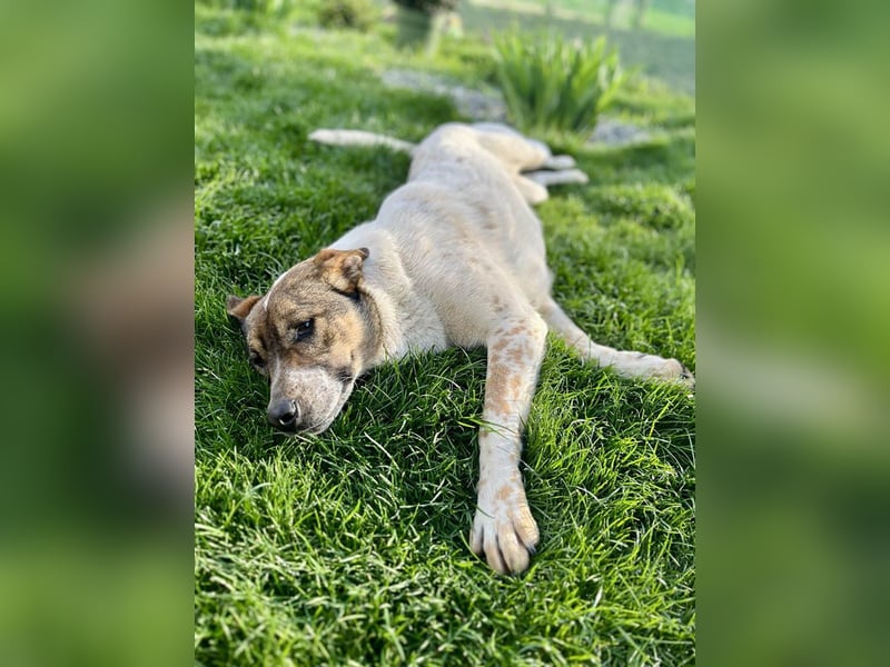Olive hat sich zu einer sanften, freundlichen und sehr menschenbezogenen Hündin entwickelt. Im Vergleich zu ihren ein wenig lebhafteren Schwestern ist Olive etwas ruhiger und liebt es besonders, in der Nähe von Menschen zu sein. Sie genießt Streicheleinheiten sehr und sucht oft die Nähe, um sich anschmiegen zu können – sei es auf einer Decke im Schatten oder in einem gemütlichen Hundebett.