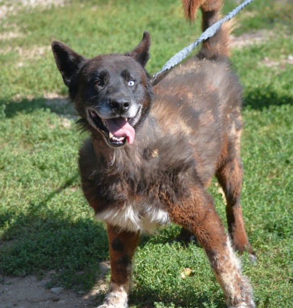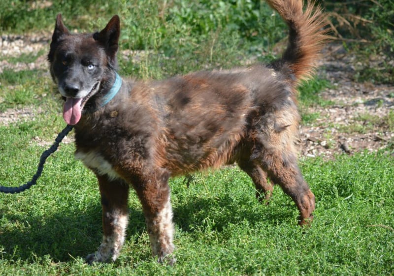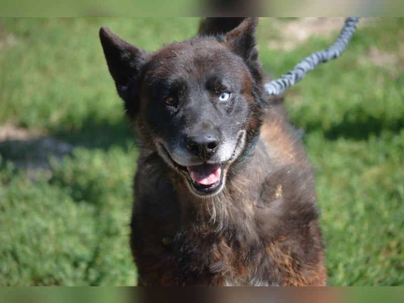 Madi ist schon rein optisch ein ganz besonderer Hund. Seine wundervollen blauen Augen machen ihn unverwechselbar. Aufgrund von Stress und schlechter Ernährung war sein Fell in einem sehr schlechten Zustand. Es wächst langsam nach. Seine Blut- und Hormonwerte waren im Blutbild gut. Er ist sehr lieb, gehorsam, treu und freundlich. Konflikten mit anderen Hunden geht er lieber aus dem Weg. Er ist geduldig, leidet aber trotzdem sehr unter dem Eingesperrt sein im Zwinger. Er möchte so gerne mit seinen Menschen zusammen sein. Er weint viel vor lauter Verzweiflung. Es wird dringend Zeit, dass er ein Zuhause findet, da er dem Stress nicht gewachsen ist. Er braucht viele Schmuseeinheiten und Aufmerksamkeit. Wir denken, dass er das Alleine bleiben noch ein wenig üben muss. Er ist ein super Hund, der schon gut an der Leine geht.