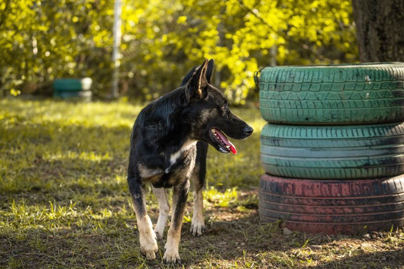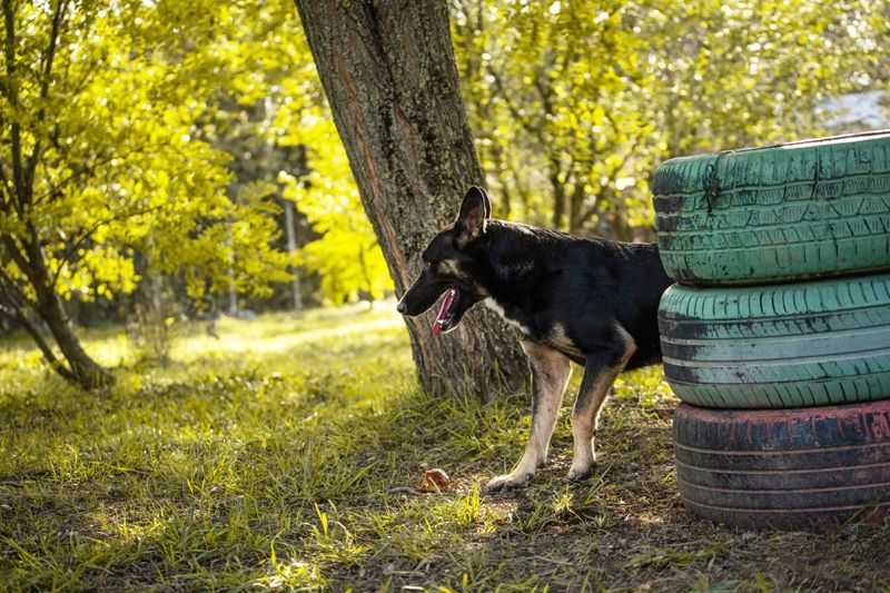 Übrigens stammt Duster aus den Straßen eines benachbarten Dorfes und lebt heute im Tierheim mit Rüden und Hündinnen in einem Gehege zusammen.