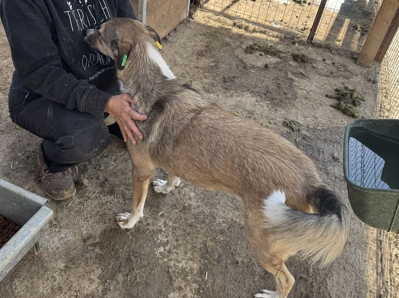 Tora wartet im Tierheim Bucov/Rumänien auf Menschen, die ihr zeigen, dass Nähe und Geborgenheit etwas Wundervolles sind. Die etwa ein Jahr junge, beige-graue Hündin mit weißen Flecken am Hals und einer weißen Schwanzspitze ist einfach ein Schatz. Sie ist sehr aufgeschlossen, verschmust und freundlich. Schon bei unserem Besuch blieb sie immer in unserer Nähe, lief uns hinterher, gab Küsschen und konnte von Streicheleinheiten gar nicht genug bekommen. Leckerchen liebt Tora über alles und nimmt sie sanft aus der Hand. Im Zwinger zeigt sie sich verträglich mit ihren Artgenossen, doch am glücklichsten ist sie, wenn sie beim Menschen sein darf. Tora ist eine unglaublich liebe Hündin, die jede Aufmerksamkeit dankbar annimmt und endlich ihre eigene Familie verdient hat.