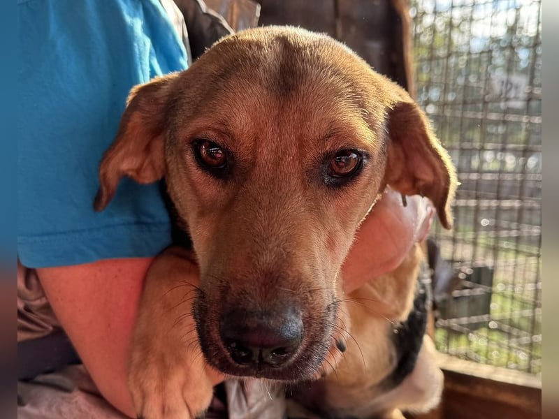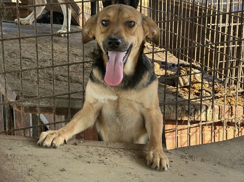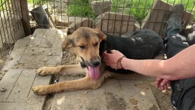 Die freundliche Vita lernten wir kennen, als wir das Tierheim Bucov/Rumänien mit seinen rund 5.000 Hunden besuchten. Sie zeigte sich von Anfang an neugierig und zutraulich und kam uns ruhig am Tor begrüßen, als wir Ihren Zwinger betraten. Unsere mitgebrachten Leckerlies nahm sie gerne entgegen. Der Tierheimalltag ist von einem hohen Stresspegel geprägt und Menschenkontakt gibt es kaum. Umso mehr überraschte es uns, dass sich Vita als eine echte Schmusebacke entpuppte. In einer ruhigen Ecke legte sie sich sogar schnell auf den Rücken und streckte uns einladend ihren Bauch entgegen. Sie hatte eindeutig Gefallen an unserer Zuwendung. Vita hat das Zeug zu einem echten Traumhund. Wo sind nur die Menschen, bei denen sie das zeigen kann und die mit ihr zusammen eine ganz neue Welt entdecken? Als wir sie im Oktober 2024 besuchten, war sie leider bereits viel zurückhaltender. Da merkt man leider, was wenig positiver Input bewirken kann. Vita wird nun wohl ein wenig brauchen, um anzukommen. Aber dann wird sicher bald wieder ihre Sonnenseite zum Vorschein kommen.