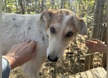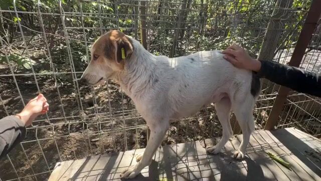 Nicola ist eine helle Hündin mit feinen Dalmatinerflecken. Ihr Kopf und ihre Ohren sind rötlich und auf dem Rücken hat sie einen großen schwarzen Fleck. Trotz so farbenfrohem Aussehen, ist die liebe Nicola innerlich sehr gestresst von der lauten und unbeständigen Umgebung. Die hochbeinige, 51cm mittelgroße Hündin hatte trotz ihres jungen Alters, vermutlich schon Welpen. Es könnte auch sein, dass ihre Tochter sogar mit im Zwinger sitzt, weil sie sich sehr ähneln und sie sich gegenseitig Sicherheit geben. Obwohl sie sich gerne streicheln ließ, blieb sie skeptisch und vorsichtig – ein verständliches Verhalten nach all dem, was sie erlebt hat. Es ist wichtig zu betonen, dass sie niemals geschnappt hat; ihre Zurückhaltung zeugt von ihrer Unsicherheit und nicht von Aggression. Nicola möchte schnellstmöglich dem Stress entfliehen und wir sind sicher, dass sie in einem ruhigen und liebevollen Zuhause aufblühen kann. Mit Geduld und Verständnis wird sie sicherlich lernen, Vertrauen zu fassen und ihre sanfte Seite zu zeigen.