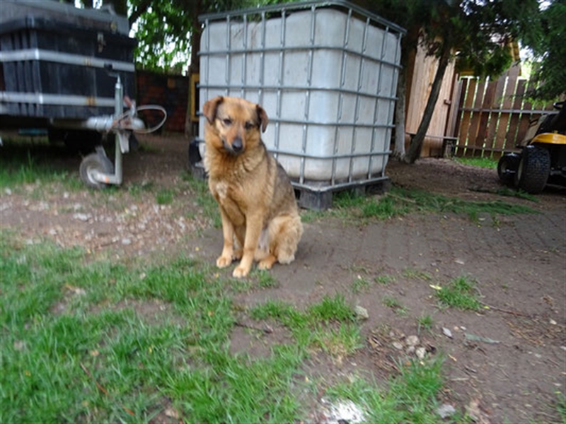 Seitdem lebt sie dort tagsüber mit zweibeiniger Gesellschaft und anderen Hunden, nachts im Zwinger zusammen mit einem Rüden.