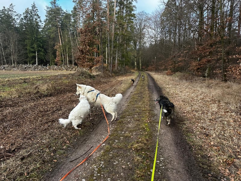 Marlon geht recht passabel an der Leine,- hat Sinn und Zweck der ‚mensch-hundlichen Verbindungsstrippe‘ erkannt…… Dennoch ist seine Leinenführigkeit, wie auch sonst noch Vieles ausbaufähig.