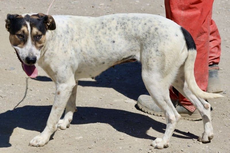 Antonella (4380) Mischlings Mädel, geboren am 19.04.2023, hat eine Schulterhöhe von 57 cm und wiegt 24 kg.