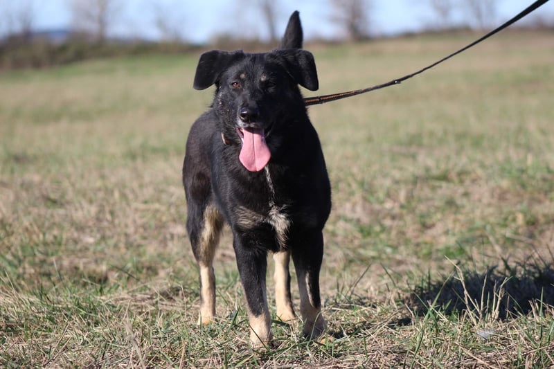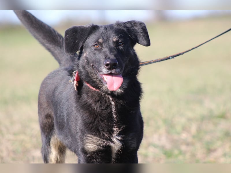Alfa ist im April 2021 geboren, wiegt 25 kg, hat eine Rückenlänge von ca. 95 cm und eine Schulterhöhe von 52 cm. Natürlich ist sie gechippt, geimpft und kastriert. Ein Test auf Mittelmeerkrankheiten wird vor der Ausreise durchgeführt.