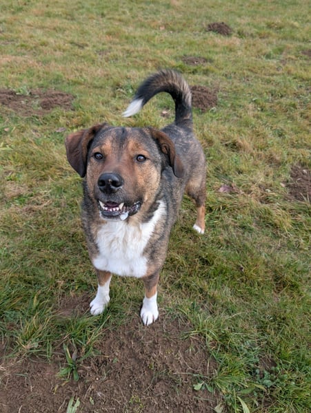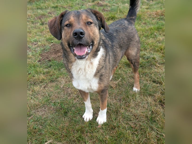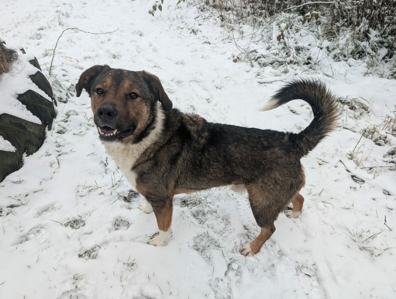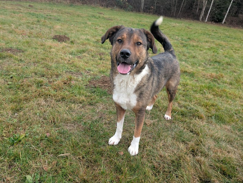 Ich bin sehr menschenbezogen, anhänglich und freue mich über jede Aufmerksamkeit. Mit anderen Hunden komme ich super zurecht, ich pöble nicht und bin absolut sozial.