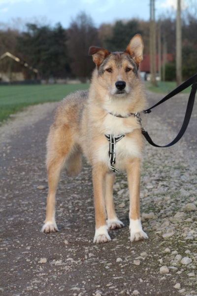 Elisa ist eine aufmerksame und doch etwas unsichere Hündin, die aber in gewohnter Umgebung in sich selbst ruht.Sie liebt die Menschen, die sie interessieren und kuschelt auch gerne. Es kann durchaus passieren, dass sie Menschen auch mit ihrem Dickkopf erst einmal ignoriert. Elisa läuft gut an der Leine und hat großen Spaß am Spazieren gehen. In der Pension bei Roland bildet sie ein gutes Team mit einem ängstlichen Rüden, der auch aus dem Tierschutz kommt. Sie ist stubenrein und kennt auch das Autofahren. Elisa braucht eine klare Linie und Menschen, die mit ihr kommunizieren können. Dann ist sie eine wunderbare Begleiterin, die mit ihren Menschen gemeinsam alles erlebt.