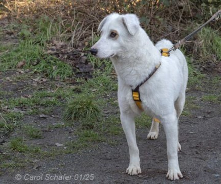 Die ersten Tage, als er neu in der Tierherberge war, ist er noch gut Gassi gegangen. Mittlerweile hat er sich eingelebt und zeigt, dass er einen Dickkopf hat.