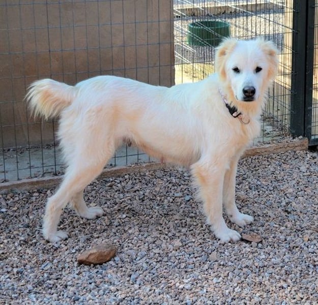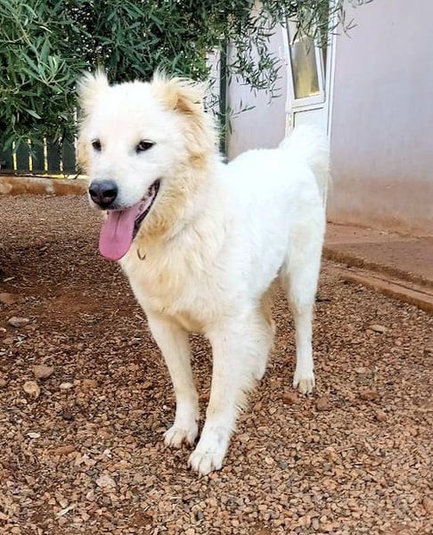 Nakumas Geschichte in Kürze: Als unsere Tierschützerin in Kardjahli im Januar 2020 eine weiße Hündin mit fünf kleinen Welpen entdeckte, staunte sie nicht schlecht. Die Hündin sah Tabea zum Verwechseln ähnlich, offenbar ist sie Tabeas Schwester. Nakuma – diesen Namen bekam sie – war in einem sehr schlechten Zustand: abgemagert und mit einer Hauterkrankung. Sie versuchte so gut es ging, ihre fünf kleinen Welpen zu säugen und zu versorgen… aussichtslos… und wenn ihre Welpen überlebt hätten, dann hätten sie früher oder später ein Dasein als Kettenhunde fristen müssen. Eine Tierpension in Athen war die einzige Möglichkeit, diese Hundefamilie zu retten. So kam Nakuma, vor mehr als vier Jahren, zusammen mit ihren Welpen nach Athen und wartet im Fury Tales Shelter auf eine Chance, Familienmitglied zu werden.