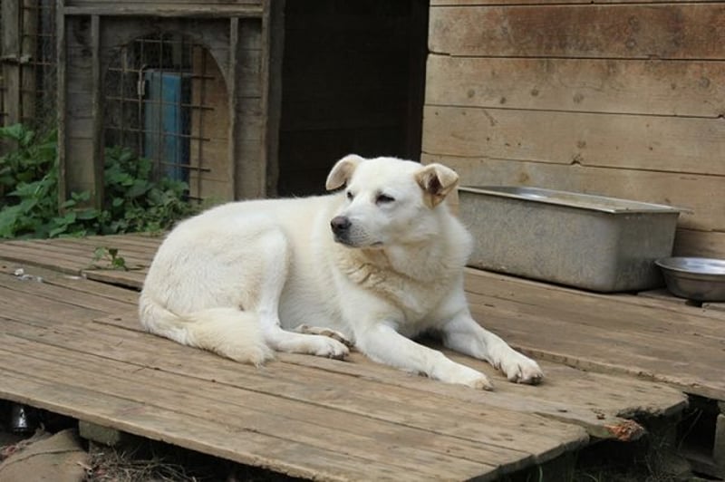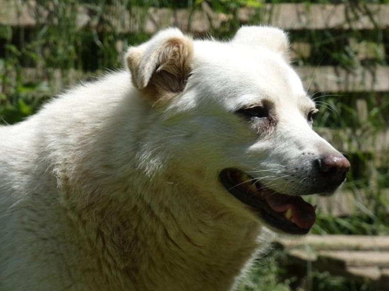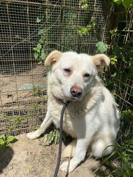 Ich selbst bin eine noch sehr junge, schneeweiße Hündin, bescheiden und vom Leben nicht verwöhnt. Ich habe null Ahnung, wie ich überhaupt in der ungastlichen Gegend überleben und noch dazu meine Hundchen säugen konnte. Ein Wunder! Ob der große Hundeengel wohl noch eins für mich übrighat? Eines, das eine liebe, geduldige, einfühlsame Familie ist, die sich auf mich einlässt, auch wenn sie mich zu Anfang noch ganz in Ruhe mich einleben lassen sollte. Ganz langsam mit vertrauensbildenden Maßnahmen. Aber ich glaube, das kann was werden! Auch wenn ich momentan noch erschrecke, wenn man mich anfassen will, so habe ich noch nie geschnappt oder gebissen. Bis vor kurzem habe ich halt noch nichts wirklich Gutes erlebt. Doch ich freue mich über alles, was ich an Neuem erleben und lernen kann, zeigt es doch, dass noch nicht alles verloren ist.