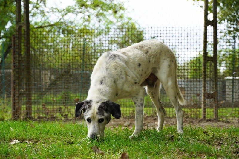 Eine Tierschützerin, die sich niemals von diesen armen Tieren abwendet, wurde gerufen und bekam einen halbverhungerten, knochendürren, sehr schwachen und sehr alten Hund übergeben. Grays Frauchen war vielleicht schon lange krank und konnte sich selbst nicht mehr helfen – und so hatte ihren treuen Freund einfach vergessen.