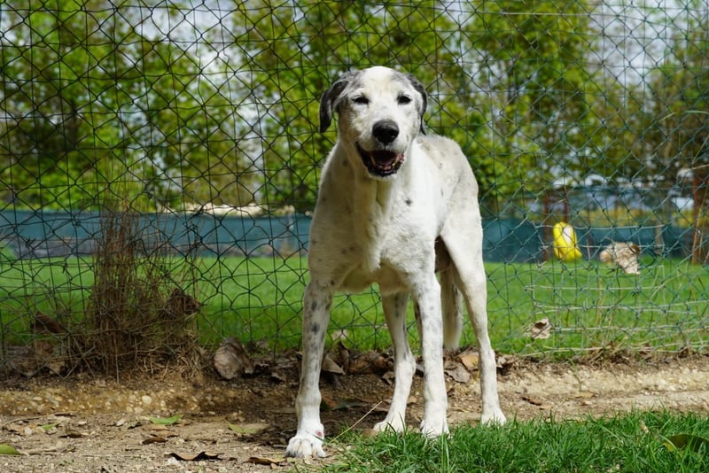 Gray geht gut an der Leine und würde sich sicher über kleine Spaziergänge freuen. Er ist ein ruhiger, freundlicher Hund, der nicht viel verlangt – nur ein wenig Zuwendung und ein Zuhause, in dem er für immer bleiben kann.