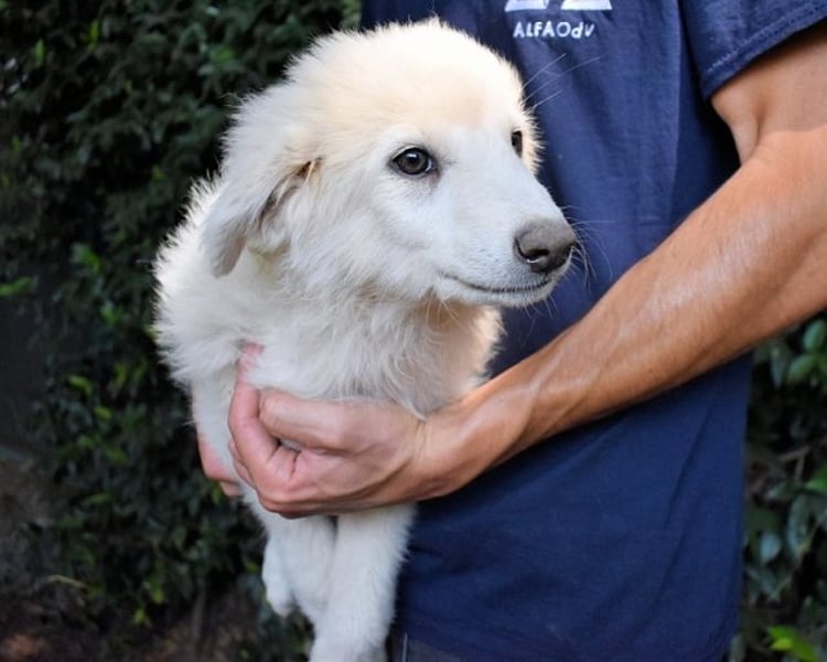 Die zwei Welpen wurden ausgesetzt und mitten auf der Straße gefunden, voll mit Flöhen und Dermatitis und vor allem schrecklich unterernährt. Sie sehen aus wie Maremmano Mischlinge, sind dafür aber eigentlich viel zu klein für ihr Alter. Doch vielleicht wurde durch die Unterernährung ihr Wachstum unterbrochen, darum wollen wir die Möglichkeit nicht außer Acht lassen, dass ein wenig Maremmanenblut durch ihre Adern fließen könnte. Das heißt, dass unser Florenz durchaus mit einigen der faszinierenden Eigenschaften eines Maremmanen ausgestattet sein könnte. Und so möchten wir Ihnen, liebe Leserinnen und Leser, an dieser Stelle unsere Ausführungen zu diesen zauberhaften und beeindruckenden Tieren ans Herz legen. Bitte schauen Sie hier: