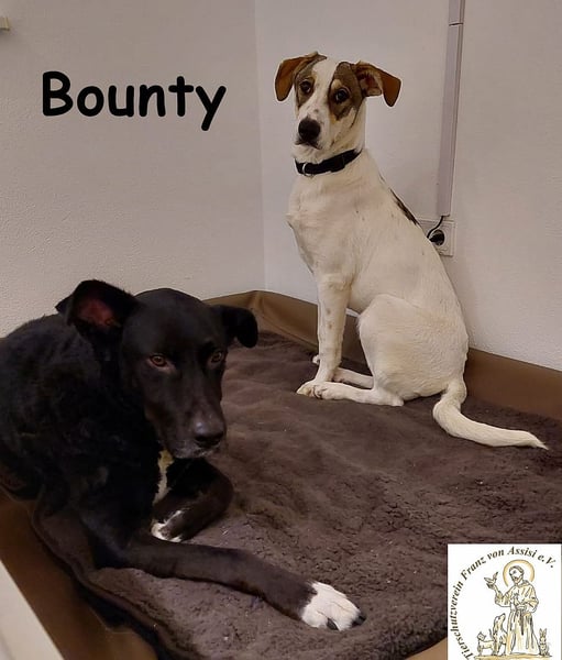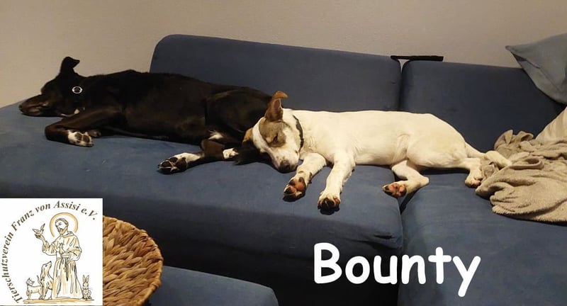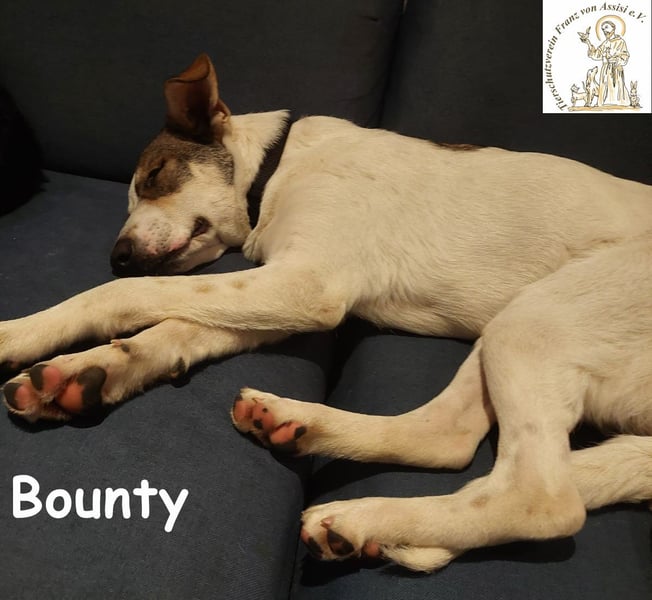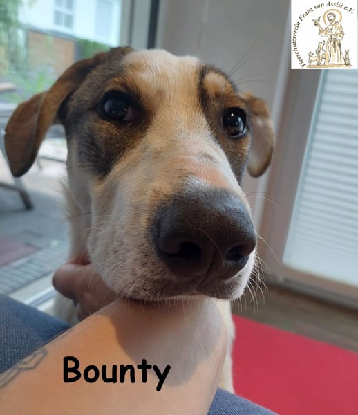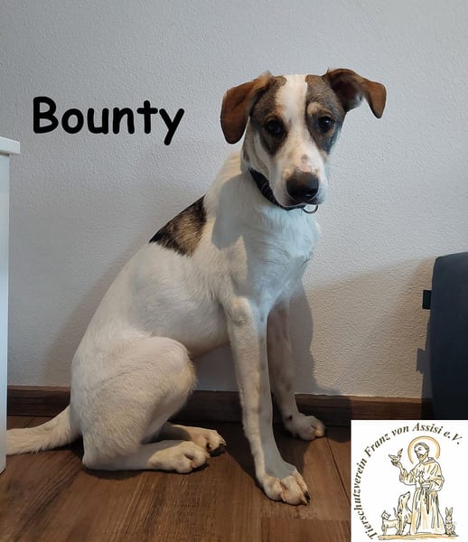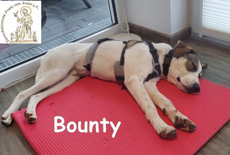 Bounty lebt seit Anfang Oktober 2025 auf seiner Pflegestelle in 86517 Wehringen, wo er sich rasch einlebte. Jeden Tag kommt er mehr aus sich heraus, legt seine anfängliche Zurückhaltung Schritt für Schritt ab. Beim Gassigehen wird er mehr und mehr zum ebenso mutigen wie freudigen Entdecker der Welt. Hat er zu seinen Menschen Vertrauen gefasst, orientiert er sich an ihnen, sucht ihre Nähe und Streicheleinheiten und kommt bei ihnen zur Ruhe.