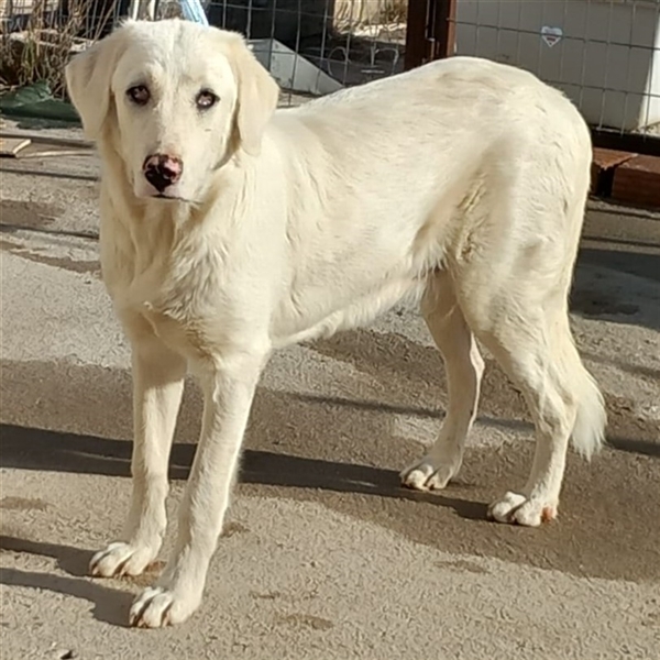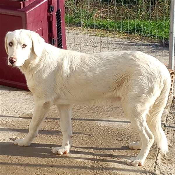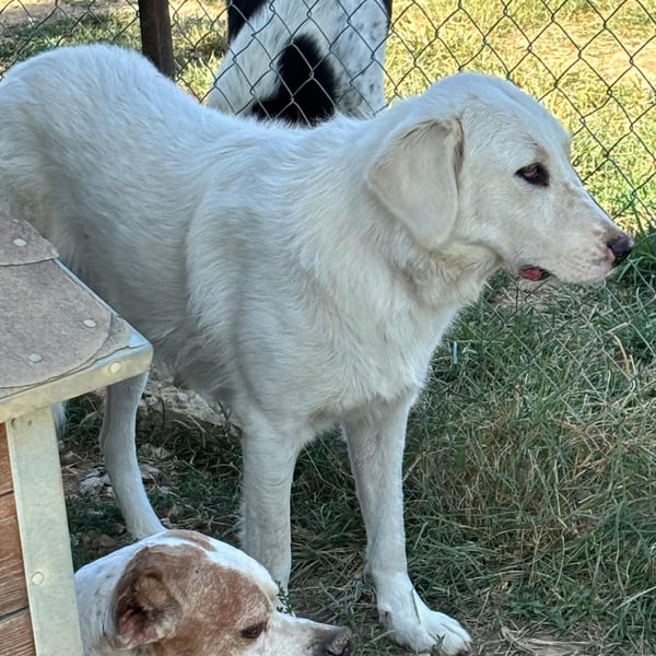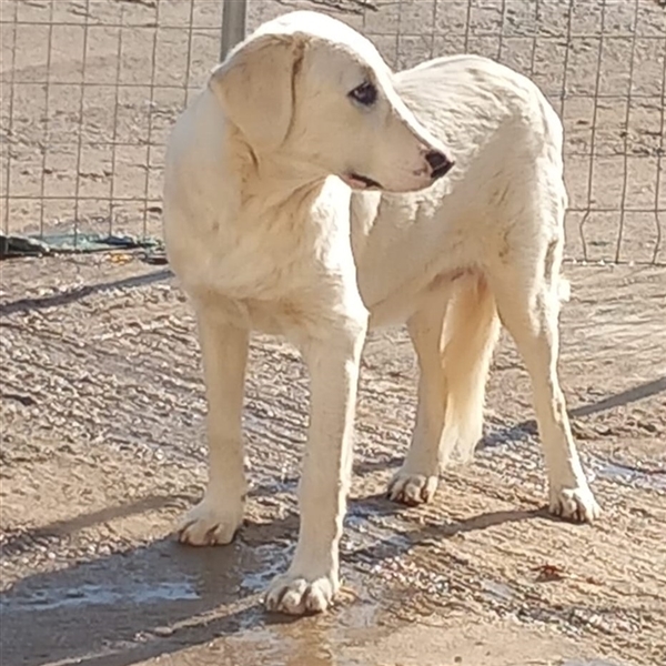 Ezra ist eine sehr liebe, sanfte Hündin, die aber bisher kaum positiven Kontakt zu Menschen erfahren hat. Entsprechend zurückhaltend und vorsichtig begegnet sie uns Zweibeinern. Fremden gegenüber zeigt sie sich zunächst skeptisch und unsicher, sucht lieber Abstand und beobachtet erst einmal aus der Ferne. Doch mit Geduld, Ruhe und liebevoller Zuwendung taut Ezra Schritt für Schritt auf – dann lässt sie sich vorsichtig berühren und genießt diese Nähe auch. Mit anderen Hunden versteht sie sich hervorragend. Sie lebt derzeit mit Odysseus und Philip zusammen, was ihr viel Sicherheit gibt. Im Rudel orientiert sie sich stark an den anderen, geht gemeinsam mit ihnen ins Gehege hinein und hinaus und zeigt sich dort sozial und freundlich. Für Ezra wünschen wir uns ein Zuhause bei einfühlsamen Menschen, die ihre Zurückhaltung respektieren und ihr die Zeit geben, die sie braucht. Menschen, die ihr mit Geduld und Verständnis zeigen, dass sie willkommen ist und nichts mehr zu befürchten hat. Ein souveräner Ersthund wäre für Ezra eine wertvolle Hilfe, an dem sie sich bestimmt orientieren könnte - zudem sollte ihr Zuhause in einem ländlicheren Gebiet sein. Ezra wird Zeit brauchen, um Vertrauen zu fassen – doch in den richtigen Händen hat sie das Potenzial, eine treue Begleiterin zu werden, die ihre Dankbarkeit und Zuneigung umso intensiver zeigt.
