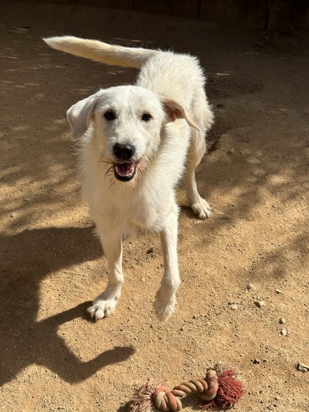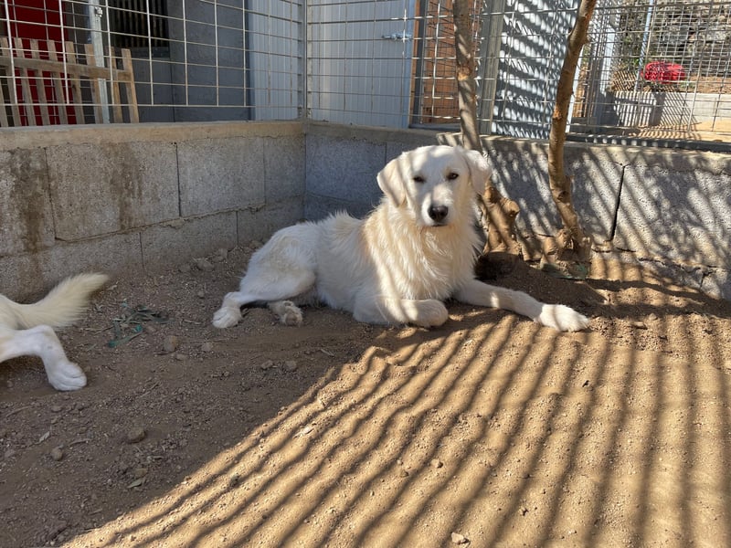 Bonny mag Menschen und ist sehr anhänglich. So weit, so unüblich, wenn man bedenkt, dass, dem Aussehen nach, entweder ein Maremmano oder ein Pastore Fonnese in Bonnys Ahnenreihe vorkommen. Wir können an ihm weder die Skepsis des Pastore Fonneses, noch die typischen Charaktereigenschaften des Maremmanos erkennen, wobei die Einschätzung nur für den begrenzten Raum gilt, in dem Bonny lebt. Hier verträgt er sich mit allem und jedem, ist verspielt, verkuschelt und sieht dabei auch noch so verdammt gut aus.