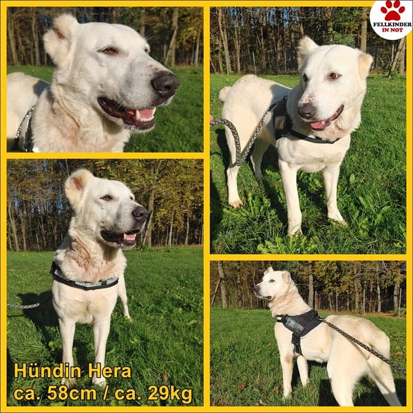 Hera ist vermutlich ein Herdenschutzhund Mischling, es sollte entsprechend Erfahrung vorhanden sein, auch ein Garten und ein ländliches Zuhause sind wünschenswert.