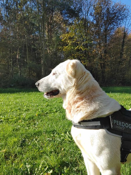 Hera ist eine kräftige Hündin, für sie muss man auf jeden Fall standfest sein. Das Gassigehen an der Leine muss geübt werden und kennt sie noch nicht.