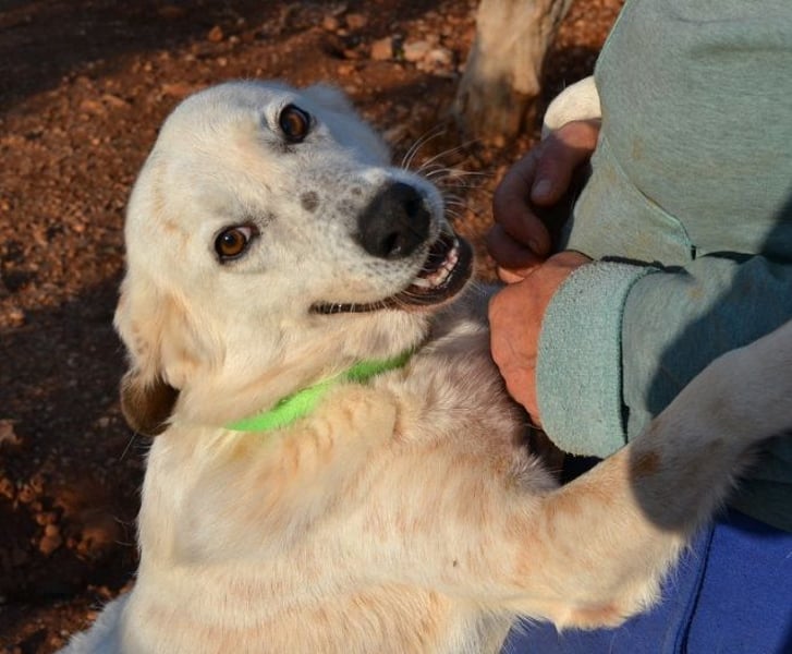 Abby Lees Geschichte in Kürze: Abby Lee wurde von Kindern mit Steinen beworfen , sie reagierte erschrocken und musste deshalb fürchten, getötet zu werden. Das war in einer sehr schlimmen Gegend für die Hunde in Ano Liosia. Jetzt ist Abby Lee in Sicherheit und hat gelernt, Menschen nicht nur zu vertrauen, sondern sie zu lieben. Sie sehnt sich nach Kontakt mit Menschen und saugt jede Streicheleinheit in sich auf.