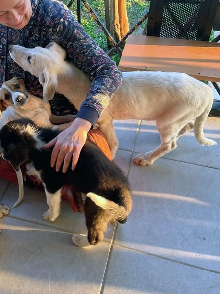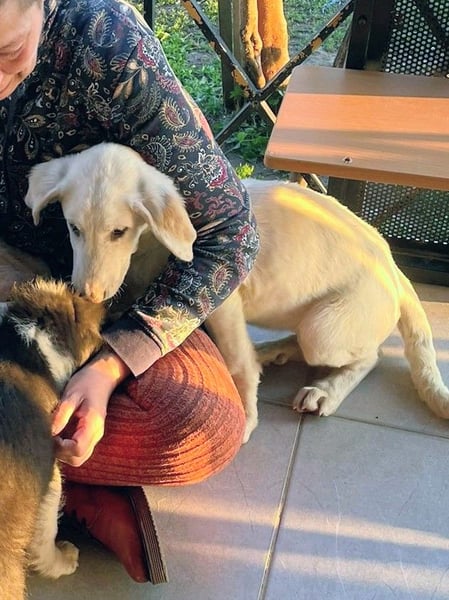 Zur Zeit lebt Angel im Zuhause der Retterin, zusammen mit deren Familie und einem großen Rudel mit anderen Welpen und anderen, zum Teil gehandicapten, Hunden jeder Größe und jeden Alters.