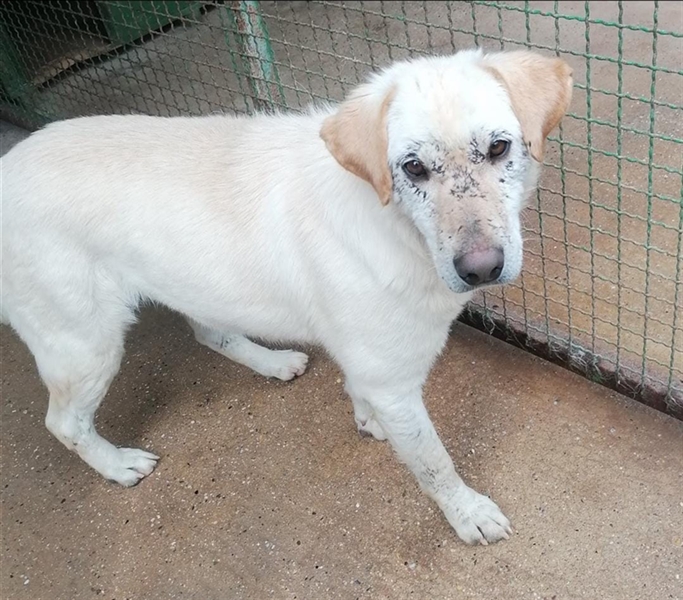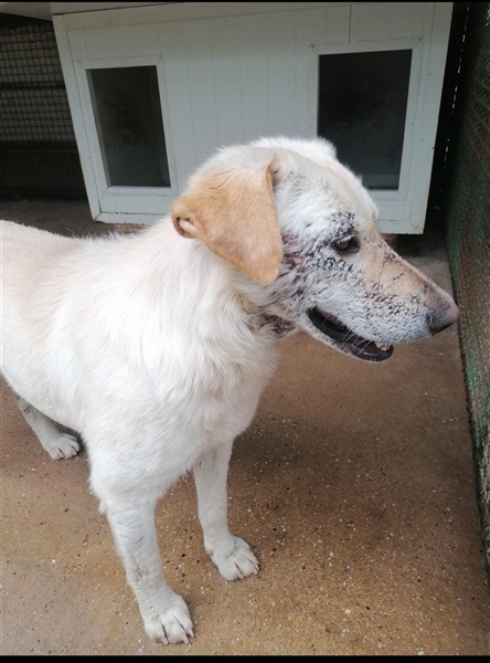 Dolli wurde im Juni 2021 mit ihren vier Welpen auf einer Straße in der Nähe eines Roma Dorfes gefunden. Obwohl sie schlimme Hautekzeme hatte und völlig erschöpft war, kümmerte sie sich ganz wunderbar und fürsorglich um ihre Babys. Genauso liebevoll versorgte auch das Asyl-Team Mama Dolli, so dass sie nun gerne in ein schönes Zuhause ziehen kann. Ihr Fell hat sich inzwischen sehr gut erholt, lediglich am Kopf gibt es noch wenige Stellen, welche sie jedoch nicht plagen.