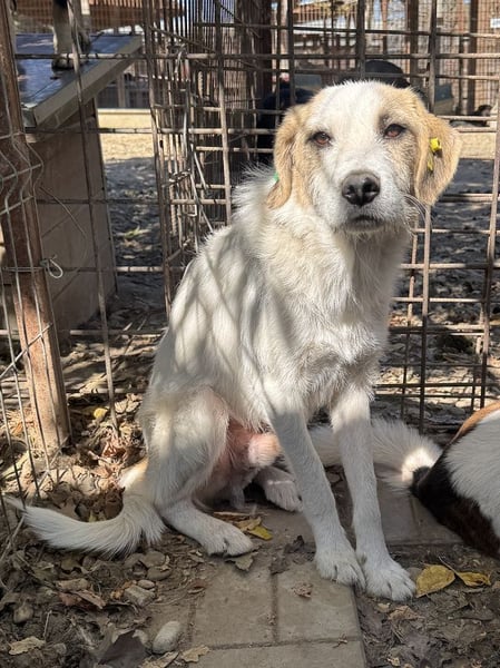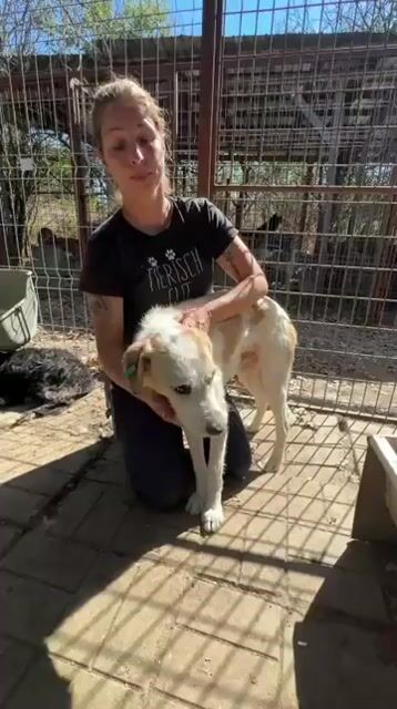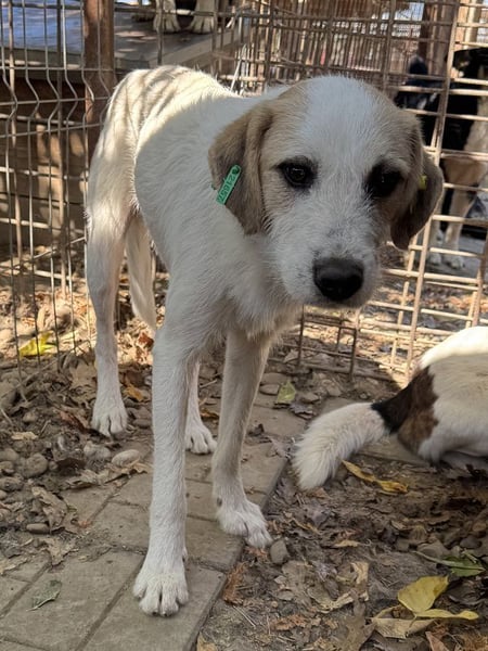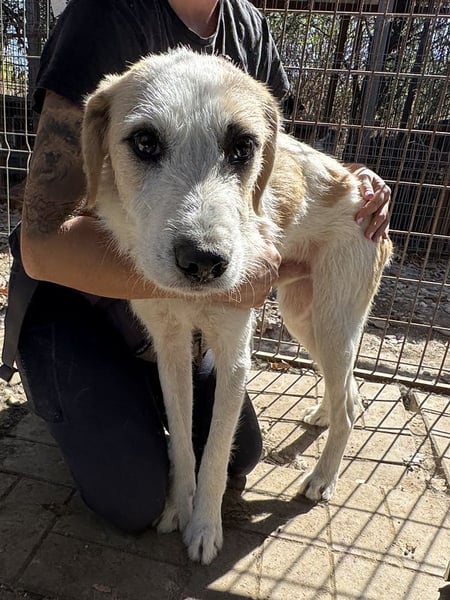 Marlon ist ein hübscher Drahthaar Rüde mit weiß-cremefarbenen Fell, den wir hinter einer der Hütten im Zwinger entdeckten. Dort saß er mit dem Rücken zu uns und wollte sich am liebsten unsichtbar machen. Langsam und behutsam konnten wir ihn einfangen, und obwohl er sicher Angst hatte, zeigte er keine Aggression, keine Abwehr. Er ließ alles still geschehen, ließ sich sogar auf den Arm nehmen – und blieb dort ganz ruhig, als hätte er gespürt, dass wir ihm nichts Böses wollen. Als wir Marlon schließlich absetzten, lief er nicht einfach davon – im Gegenteil: Er blieb in unserer Nähe, als würde er sich an dem bisschen Sicherheit festhalten, dass wir ihm gerade gegeben hatten. Marlon lebt im gemischten Rudel und zeigt sich dort eher zurückhaltend und sozial. Er ist allerdings etwa zu dünn, was vor dem kommenden Winter verheerend für ihn sein kann. Was Marlon erlebt hat, bevor er hierherkam, wissen wir nicht. Aber vielleicht ist das auch nicht wichtig. Denn viel entscheidender ist, was jetzt vor ihm liegt und das ist seine Chance auf einen Neubeginn in ein glückliches Hundeleben, in dem er aufblühen kann und endlich keine Angst vor der Ungewissheit mehr haben muss.