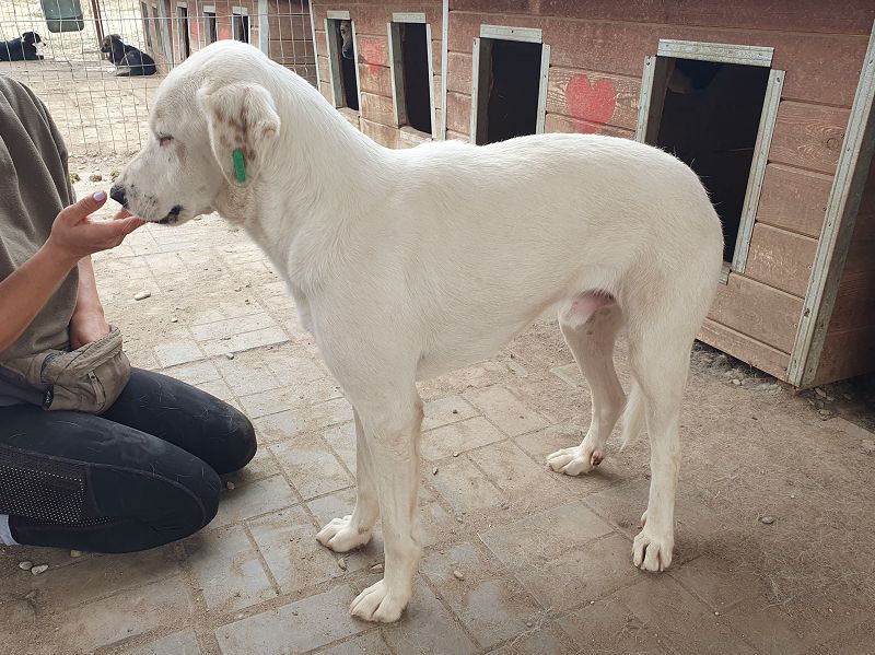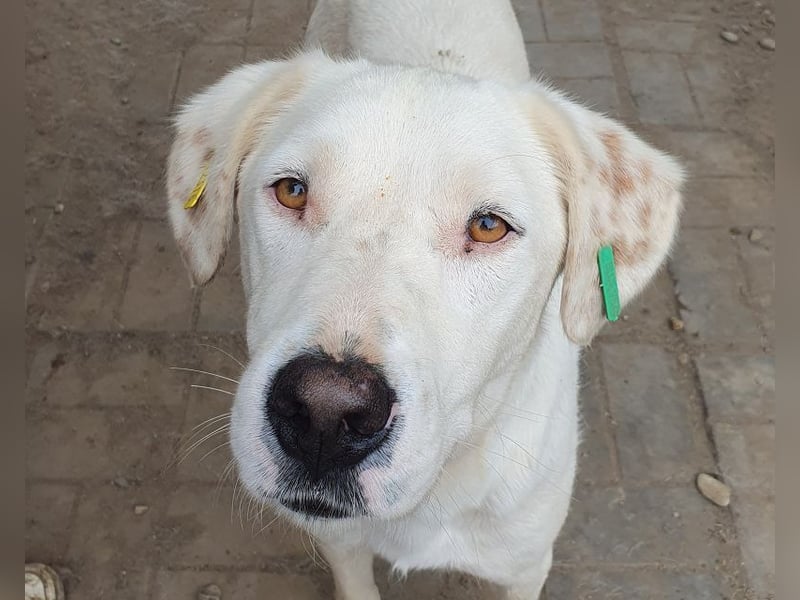 Willy ist ein wunderschöner, weißer Rüde mit liebevollem Blick und ein besonders sanftes und sensibles Wesen. Seit über einem Jahr wartet er nun schon im Tierheim – und man merkt, dass die Zeit dort an ihm zehrt. Trotz allem hat er sich seine Freundlichkeit bewahrt. Als wir ihn besuchten, blieb er ruhig und gelassen, ließ sich in aller Ruhe streicheln und nahm unsere Leckerchen vorsichtig aus der Hand. Fixiert zu werden, mag er nicht so gern – das verunsichert ihn etwas. Doch insgesamt zeigt er sich unglaublich geduldig, zurückhaltend und freundlich. Er wartete immer brav ab, drängte sich nicht in den Vordergrund und ist einfach ein feiner, bescheidener Hundejunge. Leider hatte er zu Beginn seines Aufenthalts starke Hautprobleme, vermutlich durch Stress. Diese haben sich inzwischen gut gebessert. Für diesen liebevollen Rüden wünschen wir uns ein Zuhause, in dem er endlich zur Ruhe kommen darf – bei Menschen, die ihn so annehmen, wie er ist, und ihm zeigen, dass er nicht mehr warten muss.