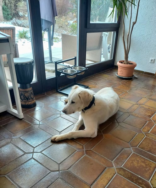 Ein eingezäunter Garten wäre perfekt, jedoch ist uns auch wichtig, dass man Mila täglich abwechslungsreiche Spaziergänge auch mit Hundekontakt bietet.