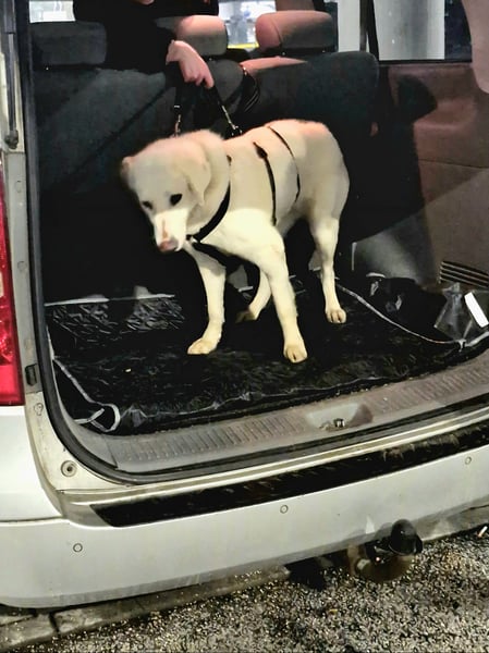 Beim Spaziergang ist Mila vorsichtig neugierig, aber nicht ängstlich. Bei Hundebegegnungen möchte sie Kontakt aufnehmen und muss noch lernen, dass man nicht zu jedem Hund an der Leine Hallo sagen kann.