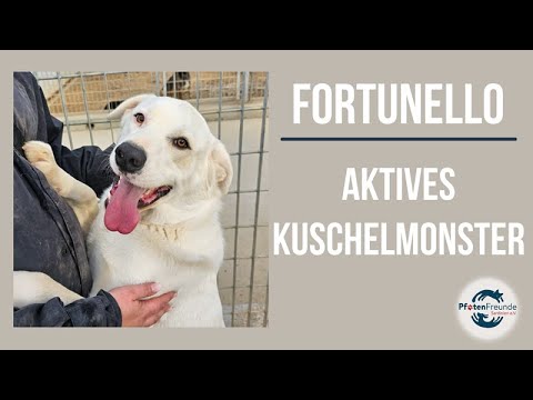 Fortunello ist Menschen und anderen Hunden gegenüber offen und freundlich. Über Menschenkontakt freut sich der hübsche, schneeweiße Junge riesig. In seinem Zuhause sollten Kinder schon größer und standfest sein, denn vor lauter Freude über den seltenen Besuch zeigt er sich stürmisch und springt dann auch gerne an einem hoch. Das kann sich natürlich ändern, wenn er sein Defizit an Zuwendung in einem liebevollen Zuhause endlich aufholen kann, aber mit 60cm Schulterhöhe ist Fortunello nicht ganz klein. Mit etwas Geduld und viel Liebe wird aus Fortunello ein toller und treuer Wegbegleiter.