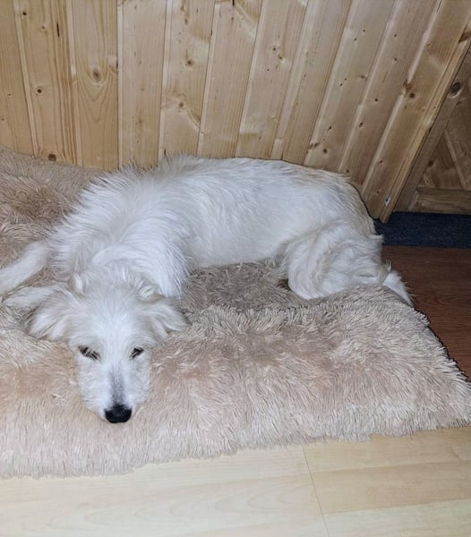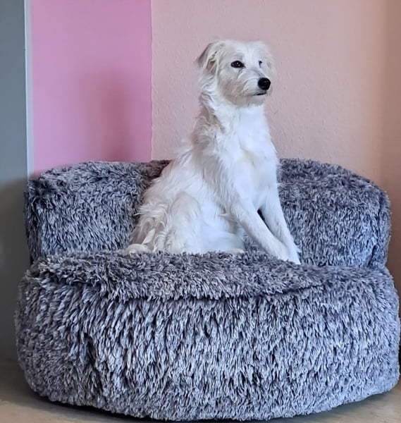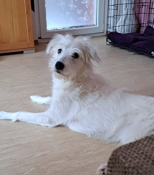 Nele ist eine zierliche, sehr menschenbezogene und eher unterwürfige Hündin. Im Haus zeigt sie sich ruhig, aufmerksam und extrem kuschelbedürftig – Nähe zum Menschen ist ihr sehr wichtig.