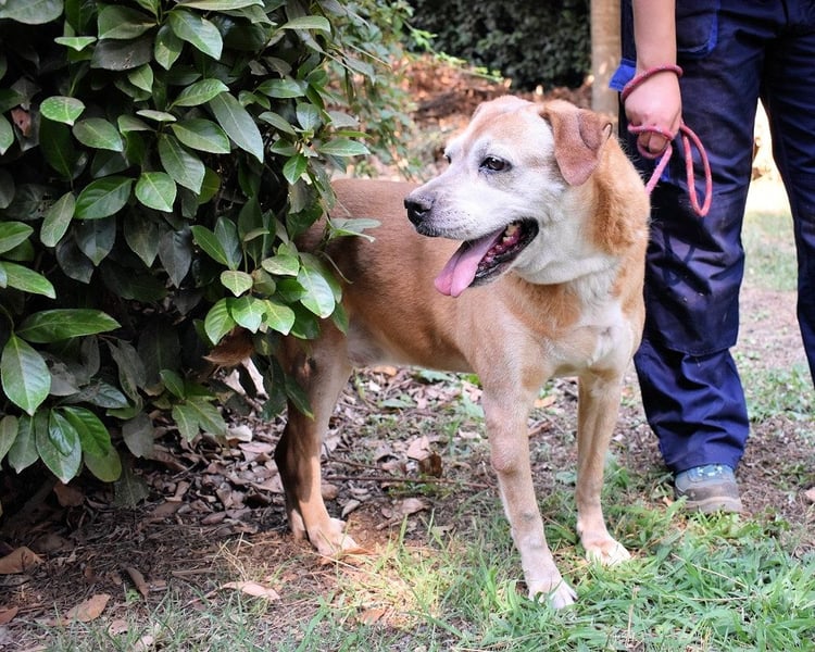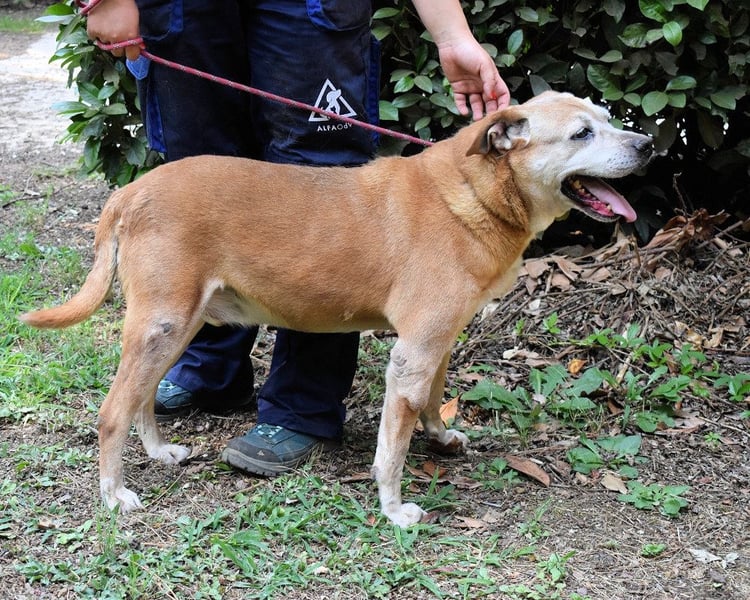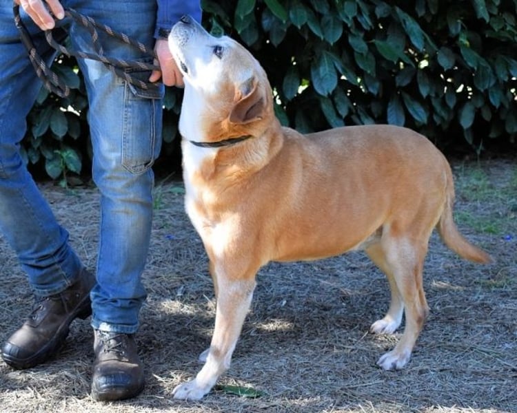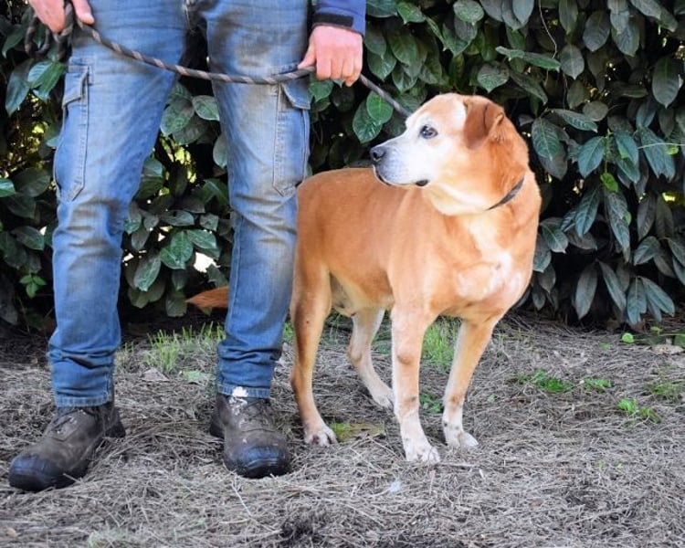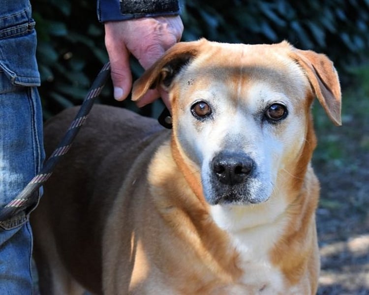 Etwas älterer Tierschutzhund mit tollem Charakter gesucht? Voilà, hier haben wir ihn, unseren goldigen Rinaldo. Das Fell caramellfarben, mit ein paar weißen Stellen, das Gesicht altershalber schon etwas heller, sowie große, dunkle Augen, die erwartungsvoll in die Kamera blicken, vielleicht den einen oder anderen Labrador in der Verwandtschaft. Das ist unser Senior Rinaldo, fast zehn Jahre alt (Stand April 2024), und seit März 2019 eingesperrt. Für alle, die nicht so gerne Kopfrechnen: Das sind mehr als fünf Jahre und mehr als die Hälfte seines Lebens.