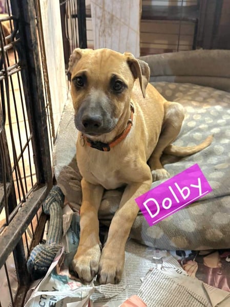 Ausgewachsen wird Dolby voraussichtlich mittelgroß bis groß werden. Da die Elterntiere unbekannt sind, sind dies jedoch nur Schätzungen und es gibt keine Garantie.