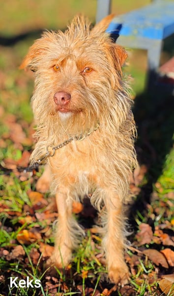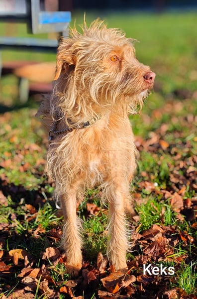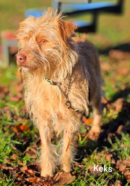 Keks ist ein bildhübscher Wuschel-Mischlingshund. Er erinnert uns optisch an einen Hollandse Smoushound. Diese Rasse wird als Geheimtipp-Familienhund bezeichnet.