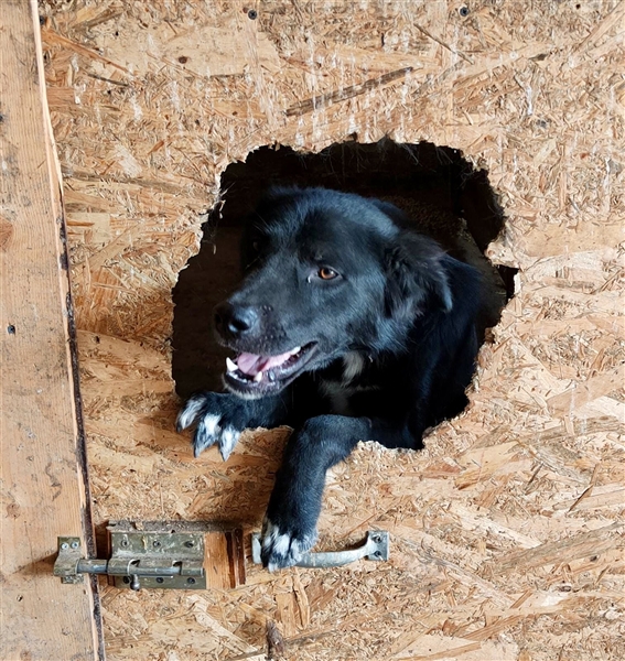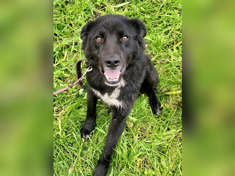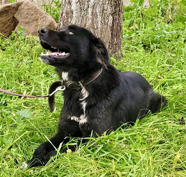 Boris Mix Junge, geboren am 01.04.2020, hat eine Schulterhöhe von ca. 55 cm und wiegt ca. 20 kg.